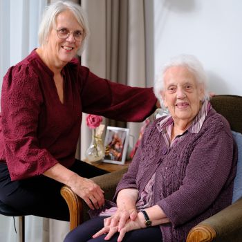 Marian: ‘Wij hebben als familie meer rust nu ze hier woont. Dat was wel anders toen ze nog zelfstandig woonde. Je bent bezorgd of het wel goed gaat of ze niet zal niet vallen enzovoorts. Ze woonde immers toch alleen. We komen hier graag en we zijn altijd blij als we elkaar zien. Natuurlijk is het niet leuk om weg te gaan, maar we weten dat ze hier niet alleen is en dat het goed is.’